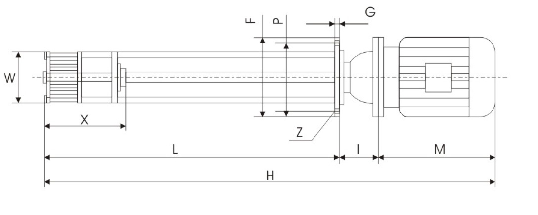 | POWER KW | CAPABILITY L | ROTATION SPEED min/r | H | M | I | L | G | P | F | W | X | Z |