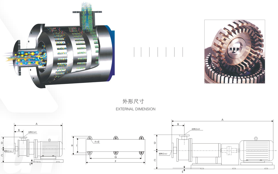 管线式高剪切分散乳化机是用于连续生产或循环处理精细物料的高性能设备,在狭窄空间的腔体内,装有1-3组对偶咬合的多层定转子。转子在马达的驱动下高速旋转,产生强劲的轴向吸力将物料吸入腔体。在最短的时间内对物料进行分散、剪切、乳化处理,粒径分布范围也显著变窄,由此可制得精细的长期稳定的产品。处理量大,适合工业化在线连续生产粒径分布范围窄,匀度高、省时、高效、节约能耗、噪音低,运转平稳能消除批次间生产的品质差异,物料100%通过分散剪切具有短距离、低扬程输送功能使用简单,维修方便可实现自动化控制。